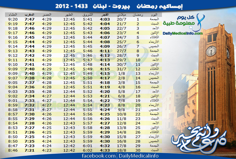 مساكية رمضان 1433 - 2012 لجميع البلاد العربية