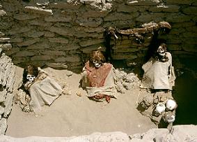 ![]() ![]() كانت مقبرة تشاوتشيلا Chauchila Cemetery وما تزال محط أنظار كلاً من السياح وعلماء الآثار إضافة إلى المهتمين بدراسة الظواهر الغامضة على حد سواء، تضم المقبرة بقايا بشرية تبدو ظاهرياً بأنها محنطة (مومياوات) وتقع في أرض صحراوية إلى الجنوب من دولة البيرو حيث تبعد عن مدينة نازكا مسافة 30 كيلومتر، أطلق عليها السكان المحليون اسم "مقبرة الرعب والأحزان" نظراً للأسرار الكثيرة التي تخبئها في جنباتها وحكايات الموت والأشباح والأحداث المخيفة التي تعرض لها بعض زوارها ، ومما زاد أيضاً في غموض المقبرة هو قربها من الخطوط الغامضة المرسومة على مساحات شاسعة من الأرض والتي تعرف باسم خطوط نازكا والتي يعتقد بعض أنها رسائل لمخلوقات غريبة أتت من خارج الأرض. في عام 1901 قام عالم الاثار ماكس أويي برفقة مجموعة من مساعديه برحلة إستكشافية إلى مقبرة تشاوشيلا بعد أن سمع الكثير من ورايات الرعب التي تثير القبائل المحلية وبعد دراسة الجثث التي تحتويها المقبرة تبين له وجود جثث في المقبرة تعود إلى حقب زمنية مختلفة وهذا أثار حيرته ودفعه للتساؤل :"ما هو السر وراء وجود هذه الجثث الحديثة نسبياً إلى جانب جثث يعود تاريخها إلى حوالي 2000 سنة ؟". - إن الطريقة والظروف التي دفن فيها هؤلاء القوم أمواتهم تركت لنا مومياوات وقطع السيراميك ومنسوجات ملونة وجماجم وأدوات أخرى كأنه لم يمسسها أحد قط كأنها فبقيت على حالها طيلة تلك الفترة الطويلة حيث حافظت الجثث المحنطة طبيعياً وأجزاء الجسم الأخرى بشكل مذهل على نفسها بفعل عوامل المناخ الجاف جداً والحار كما يلاحظ خصل من الشعر والملابس . ويقول أحد الزوار: "تشبه الأجساد المحنطة الأشباح وكأنها تبعث برسالة من الماضي ، وأشعر في بعض الأحيان أنها تحدق مباشرة نحوي، وأتمنى أن يدركوا بأن آخر شيء يمكن أن أفعله هو مضايقتهم من رقادهم بسلام". أسطورة متجددة تروج للسياحةجثث ترفض الدفن تصر بعض القبائل مثل قبيلة نازكا على فكرة وجود أرواح شريرة تحرس المنطقة وتخفي كنزها في مكان غير معروف حيث يقول أحد السكان المحليين: "لا أحد منا يعرف بالضبط ما يحدث في هذه المقبرة وكل ما أعرفه هو أنه في كل مرة كان اباؤنا يدفنون هذه الجثث ويغطونها بالتراب تعود للظهور من جديد وبنفس الشكل الذي كانت عليه من قبل" . أضواء غريبة وأجسام طائرة مجهولة إعترف عدد من سكان المنطقة بوجود كائنات أو أجسام غريبة تحوم حول المكان من وقت لآخر وأضواء قوية تنبعث من المقبرة في الليالي المظلمة ، ونذكر هنا بعض ما رواه شهود عيان: - يقول تيتو روخاس مفتش بلدية نازكا :" في 3 فبراير من عام 1972 كنت متوجهاً إلى منطقة بامبا كاربونيرا القريبة من المقبرة ، ووسط الفراغ المهول الذي يلف المكان رأيت جسماً معدنياً يحوم حول القبور ثم ما لبث أن خرج من هذا الجسم المعدني كائن قصير وغاب بين القبور ولم تمض سوى لحظات قصيرة على ذلك حتى إختفى الرجل والجسم المعدني في علياء السماء". - يقول أنيبال إنكامي الذي يعمل في ورشة لتعبيد الطرقات في جنوب البيرو :"بينما كنت أقود سيارتي ذات ليلة شاهدت ضوء كالبرق يسير بسرعة جنونية حتى إرتطم بالأرض وغطى مقبرة تشاوشيلا بكاملها ، وبعد لحظات قليلة بدأت تنبعث من القبور أضواء قوية وظهرت أجسام غريبة تشبه الغضروف بدأت تقترب من القبور بسرعة كبيرة شعرت برعب شديد وحاولت أن أهرب بسيارتي على وجه السرعة لكن المحرك توقف من غير سبب وكأن الأجسام الغريبة التي أختفت بعد دقائق معدودة أرادت مني أن أكون شاهداً على ما حدث" ، ويتابع صديقه أدولفو بنيافيل قائلاً : "لا أحد منا يستطيع أن ينكر وجود هذه الأضواء الغريبة فقد راها عشرات المواطنين في مناسبات عديدة وهناك عدد من الشهادات المحفوظة في بلدية Nazca التي تؤكد حقيقة هذه المشاهدات". نبذة تاريخية اكتشفت المقبرة في العشرينيات من القرن الماضي ولم يسبق لأحد أن استخدمها منذ القرن التاسع الميلادي، تحتوي المقبرة على العديد من المدافن تمتد لـ 700 سنة، ويعتقد بعض الخبراء أن أوائل عمليات الدفن بدأت في عام 200 بعد الميلاد.