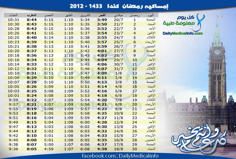 مساكية رمضان 1433 - 2012 لجميع البلاد العربية