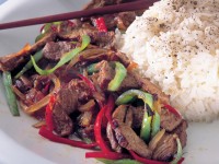 شرائح اللحم بالفلفل الأخضر والأحمر المقادير: رأس فلفل أخضر مقطع إلى شرائح رأس فلفل أحمر مقطع إلى شرائح كيلوغرام من شرائح اللحم الهبر ملعقة طعام من الزنجبيل الطازج المفروم بصلة متوسطة مقطعة إلى شرائح ملعقة صغيرة من صلصة المحار Oyster Sauce ربع كوب من الماء ملعقة صغيرة من دقيق الذرة نصف ملعقة صغيرة من الفلفل الأسود. طريقة التحضير: 2 [...]