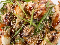 سلطة الدجاج الاسيوية المقادير - السكر البني : 2 ملعقة كبيرة - الصويا صوص : ملعقتان صغيرتان - زيت السمسم : ملعقة كبيرة - الزيت النباتي : ربع كوب - خل الأرز : 3 ملاعق كبيرة - النودلز : عبوة (الأرز) - خس : كوبان (مفروم خشن) - فيليه دجاج : 4 صدور (مسلوق) - بصل أخضر : 3 عود (مفروم) [...]